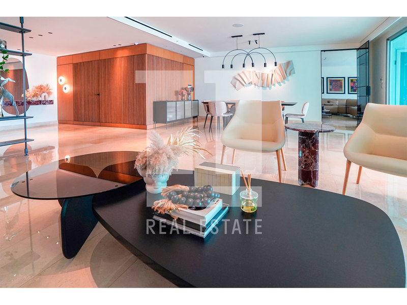 Beautiful apartment facing Omar Park. This incredible property features 4 bedrooms, 4.5 bathrooms, plus a maid's quarters with bathroom, fine finishes throughout, complete lighting, wiring for cameras, Wi-Fi, and speakers, built-in den cabinetry with marble countertops, decorative panels in the living and dining rooms, two (2) central air conditioning units, all curtains, window screens, and balcony awnings, a spacious kitchen, panoramic windows, and a dream terrace overlooking the park's green areas. It also has direct access to the park, a swimming pool, gym, BBQ area, children's play area, event room, and security. Only two apartments per floor. The apartment includes two (2) parking spaces and one (1) storage unit.