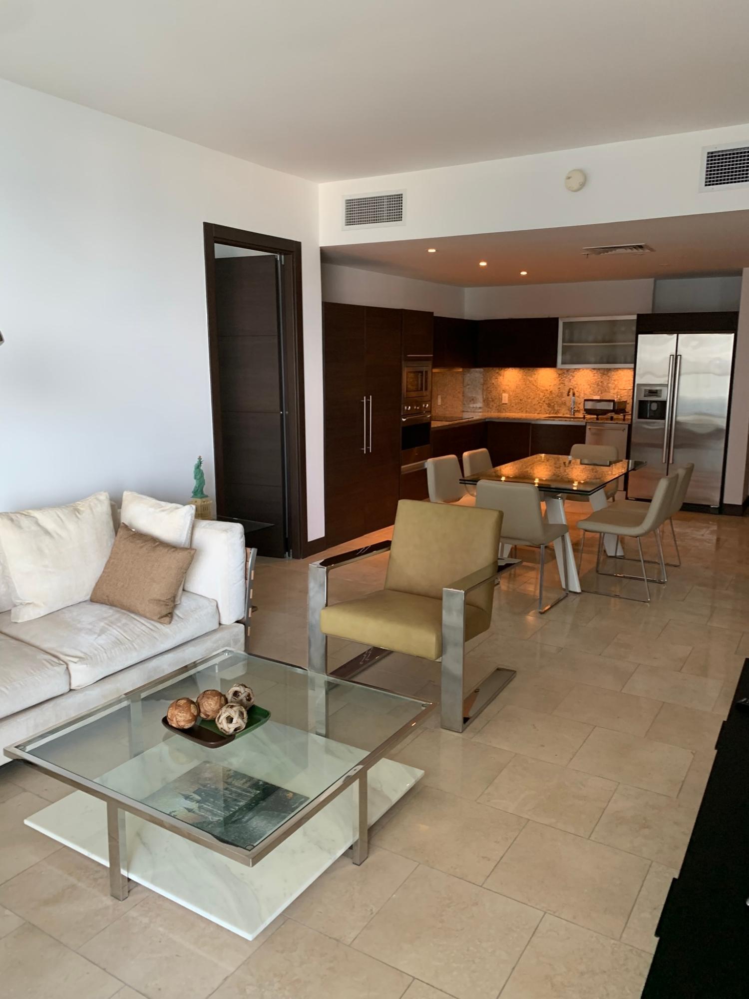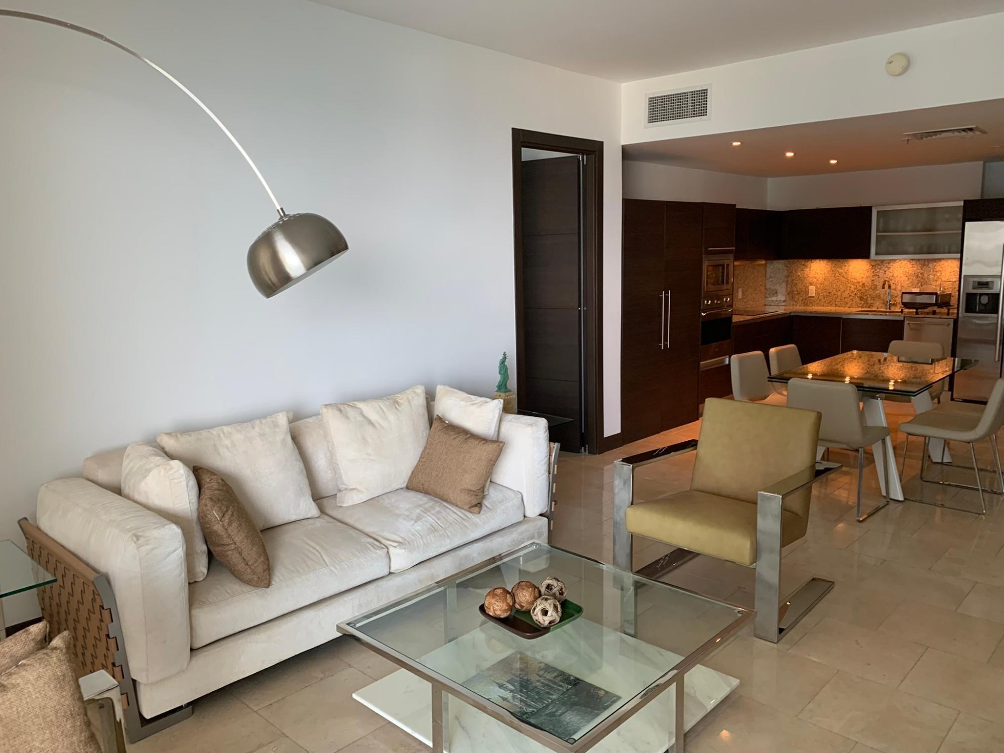"¡Exclusivo apartamento en venta en la prestigiosa Torre TOC Disfrute de vistas panorámicas al mar y a la ciudad desde el piso 22 de este lujoso hogar. Con acabados de primera, incluyendo elegantes pisos de mármol, este apartamento completamente amueblado está listo para que usted se mude. Características destacadas: Dos amplias recámaras y dos y medio baños. Terraza espaciosa para disfrutar de las impresionantes vistas. Un puesto de estacionamiento y un depósito/maletero. Aire acondicionado central para su confort. Línea blanca completa incluida. Detalles adicionales: Ubicación privilegiada en la codiciada Torre TOC