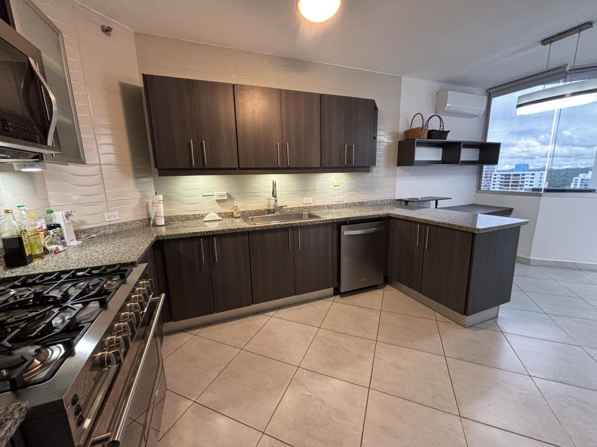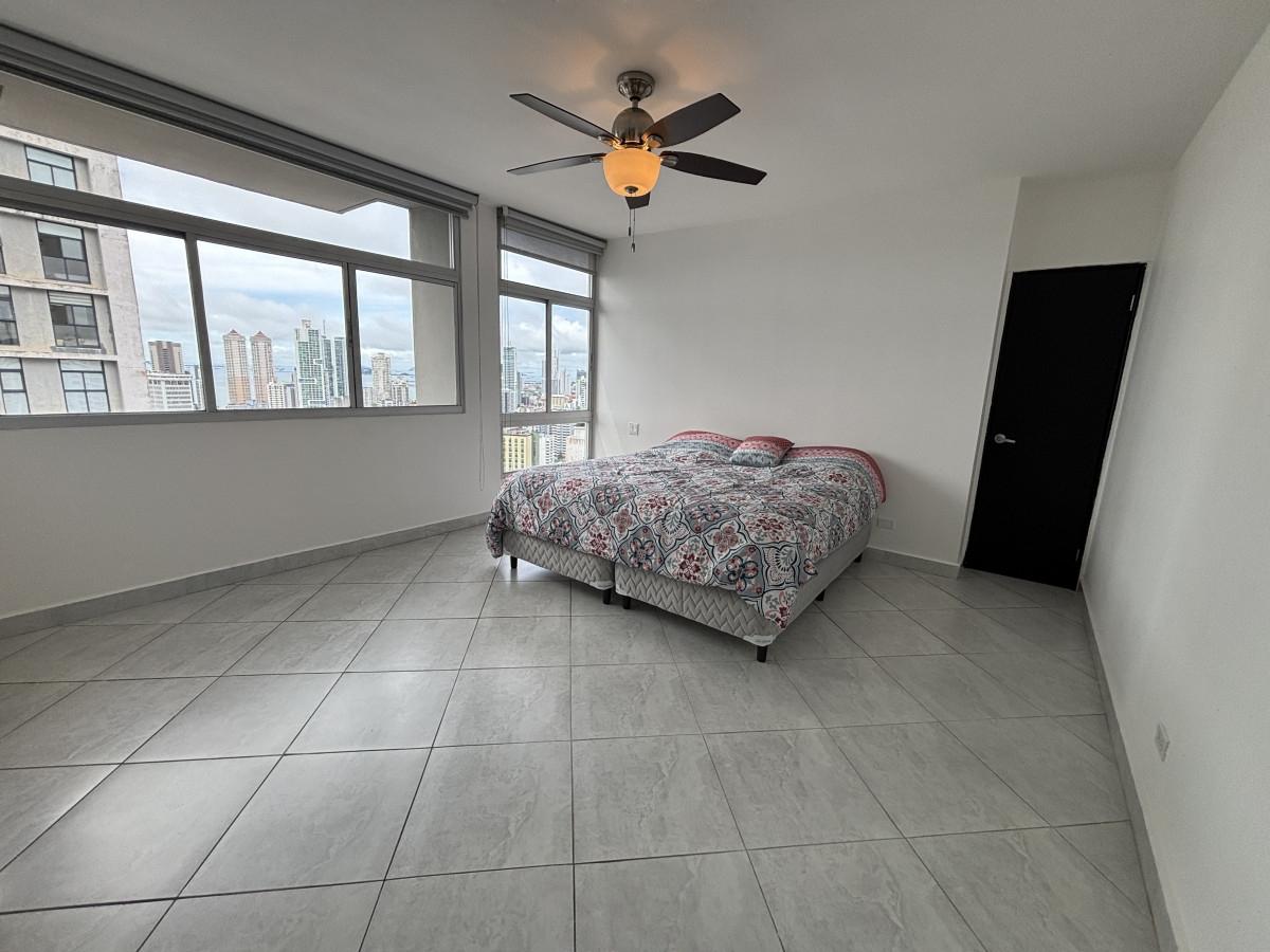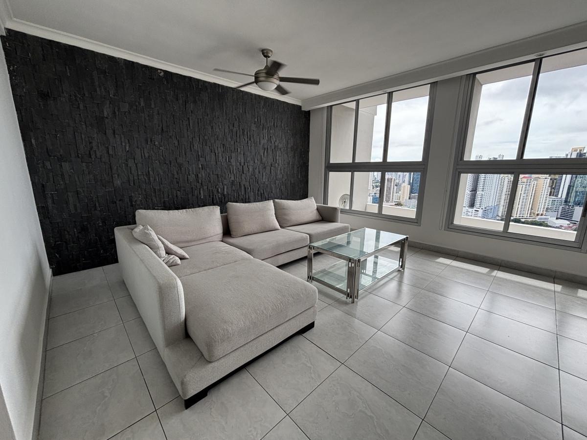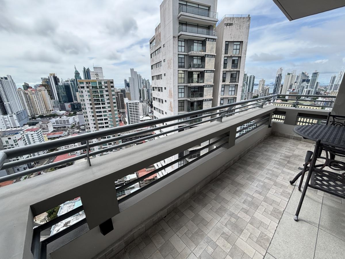 Se vende apartamento amoblado, tipo Junior Pent-house en Torre Luxor 100, El Cangrejo. Cuenta con tres especiosas recámaras, cada una con su baño, cuarto y baño de servicio, baño de visita y espectacular vista a ciudad. Los baños son amplios con finos y modernos acabados. El apartamento viene equipado con aires, cortinas, línea blanca (dos neveras), centro de lavado y lavaplatos. Adicionalmente, incluye bar con nevera para vinos y un hermoso mueble de madero hecho a la medida en el foyer del apartamento. La cocina es amplia, moderna e incluye desayunador. Luxor es reconocido como uno de los mejores y más exclusivos complejos de edificios de El Cangrejo. Las áreas sociales son amplias e incluyen piscina, jacuzzi, sauna, salas de juegos, gimnasio y juegos para niños. Los apartamentos de este tipo, cuentan con acceso a un segundo área social en la azotea del edificio con hermosas vistas, jacuzzi y espacio de bar abierto para fiestas.