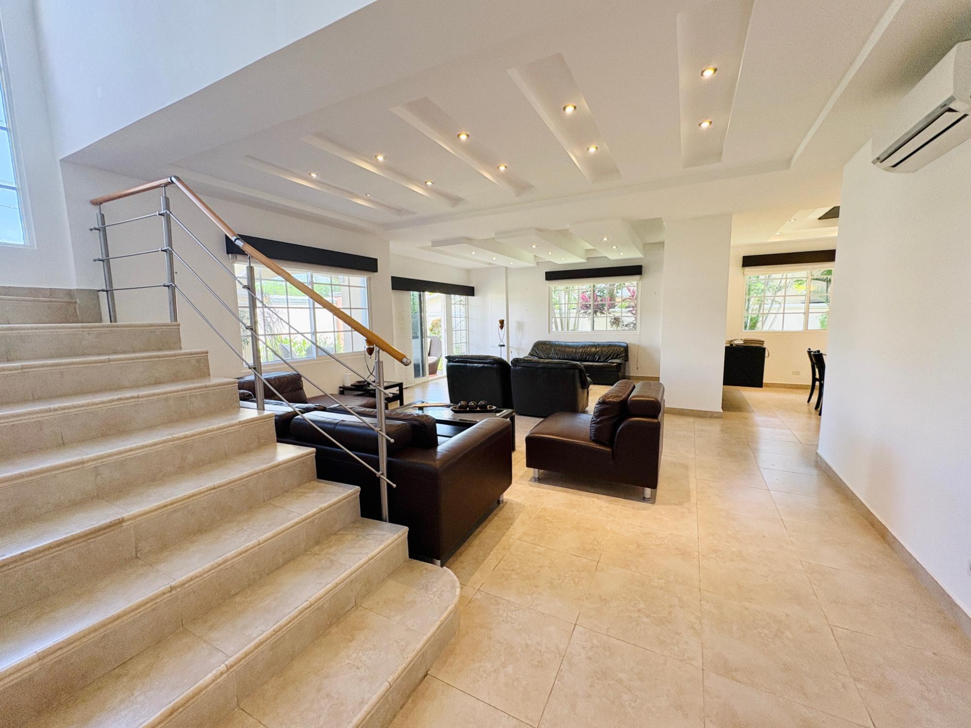 ALQUILER O VENTA DE CASA EN COSTA SUR –VILLA VALENCIA. Hermosa y amplia residencia de 412.91 m² en un lote de 506.30 m², ubicada en el exclusivo residencial Villa Valencia, Costa Sur. 4 recámaras tipo suite, cada una con baño privado, Cuarto y baño de empleada, Medio baño de visitas, Cocina cerrada remodelada, Sala, comedor, recibidor y den cerrado de gran tamaño, Jardín con terraza techada, Lavandería y 2 estacionamientos techados. Villa Valencia ofrece un estilo de vida privilegiado: seguridad 24/7, piscina, canchas de tenis y fútbol, salón de eventos, gimnasio y parque infantil. Una comunidad consolidada con excelente infraestructura educativa (escuelas internacionales y nacionales), supermercados, ciudad deportiva y rápido acceso al Corredor Sur, a solo 9 minutos del Aeropuerto de Tocumen. Precio de Venta: US$540,000. Precio de Alquiler: US$3,000 (semiamoblada).