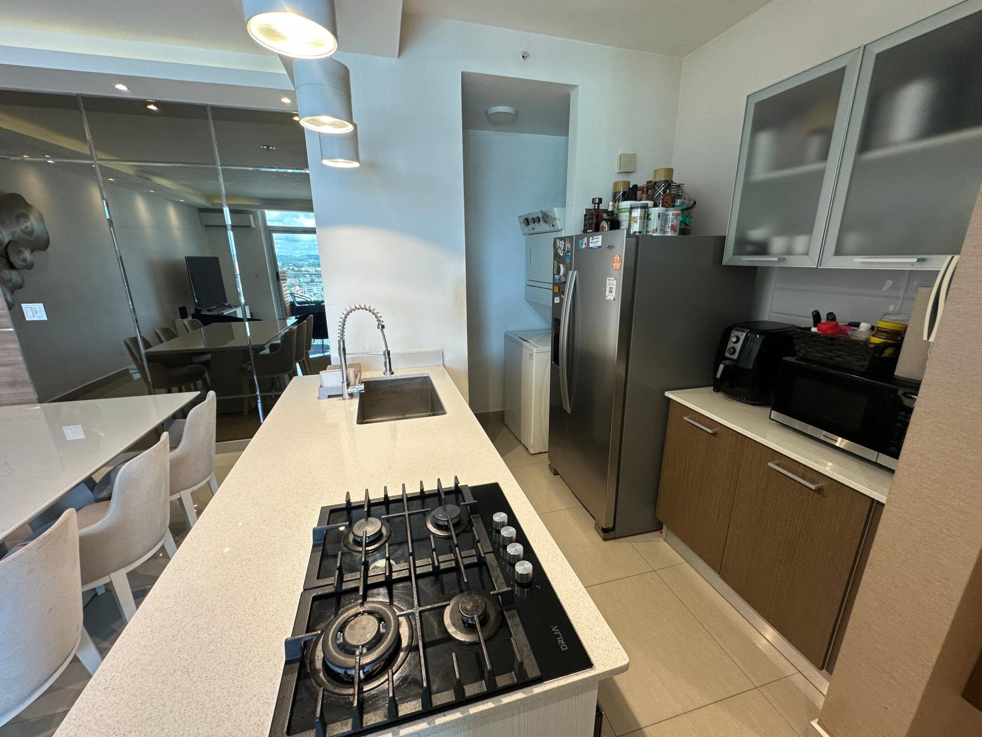 Venta de apartamento totalmente remodelado en PH Venezia Tower (El Carmen). Este apartamento cuenta con un amplio espacio y distribución. El concepto "cocina abierta" (open-kitchen) integra la sala con la cocina para que sienta una mayor comodidad al compartir con su familia y amigos. La sala cuenta con acabados de espejos ahumados, un detalle único que ofrece amplitud y un toque de moderno. Al combinar esto con la iluminación y trabajos en gypsum de techo, sentira que estuviera en un apartamento en estreno. Quiere tener un aire? no hay problema. El balcón le permite poder tener un espacio de naturaleza, junto con el piso de madera y espacio para tres sillas. No dejes pasar esta oportunidad. Contáctanos. Somos el puente hacia tu siguiente etapa de vida.