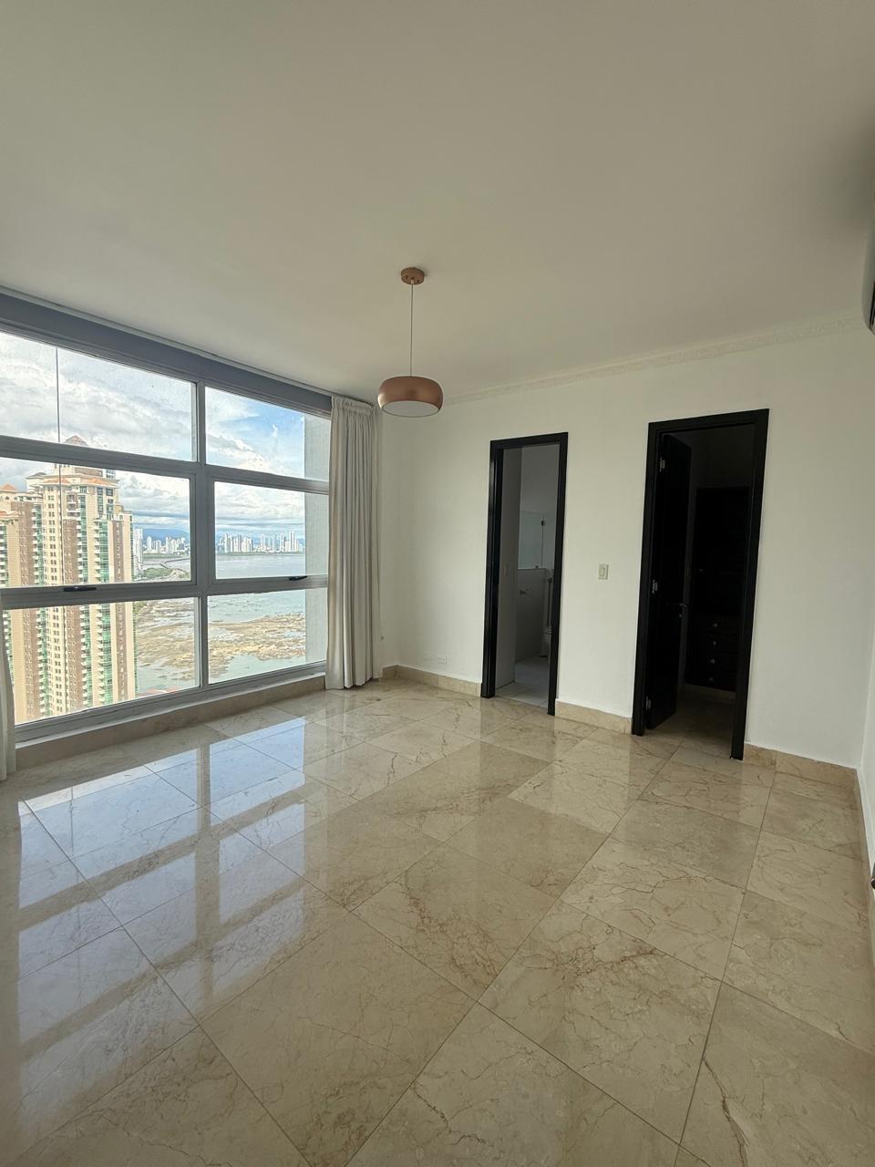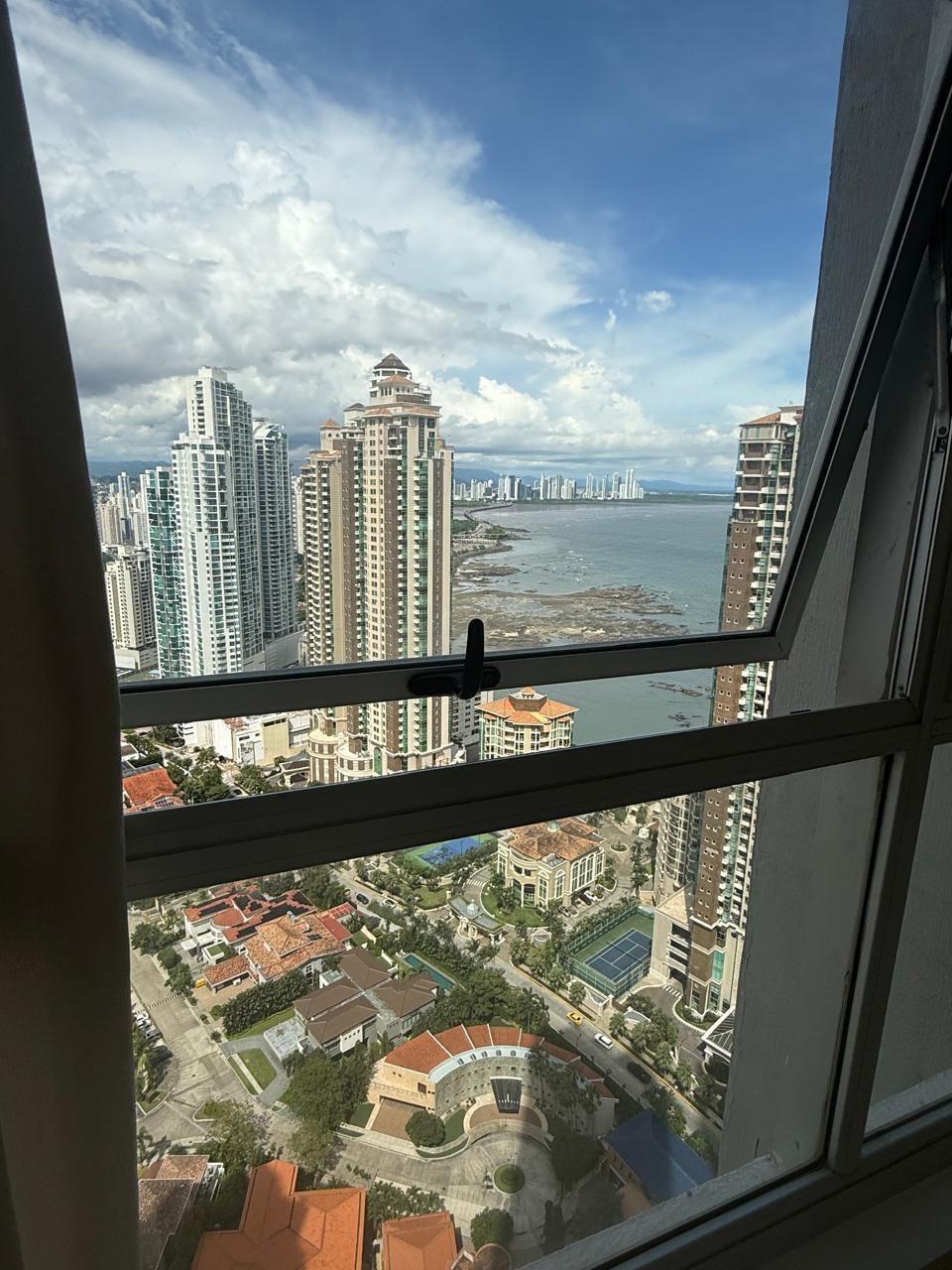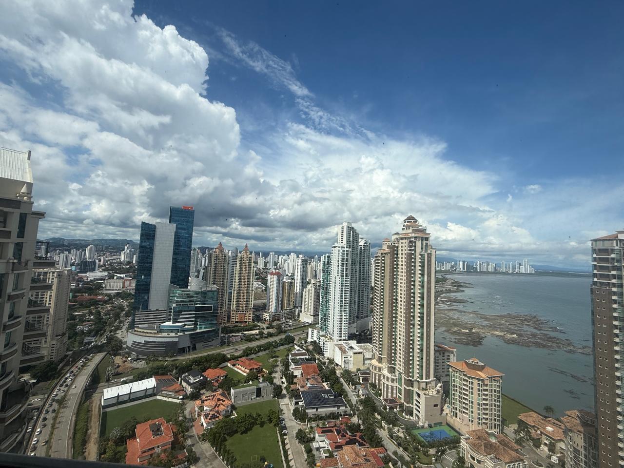 Ubicado en piso alto, este elegante apartamento de 306 m² ofrece un estilo de vida de lujo con una vista panorámica al mar, la ciudad y las montañas. Sus acabados de calidad como pisos de mármol y su distribución amplia lo convierten en una oportunidad única para quienes buscan confort y exclusividad. Características del apartamento: 3 recámaras espaciosas con baño privado 3 baños completos + baño de visita Sala, comedor, balcón y den familiar Cocina cerrada amplia con línea blanca Lavandería, cuarto y baño de empleada 2 entradas independientes al apartamento 2 estacionamientos Línea blanca incluida Edificio Q Tower: Área social completa con piscina, gimnasio, salón de eventos y más Seguridad 24/7 Ubicación privilegiada en Punta Pacífica, cerca de centros comerciales, hospitales y principales vías