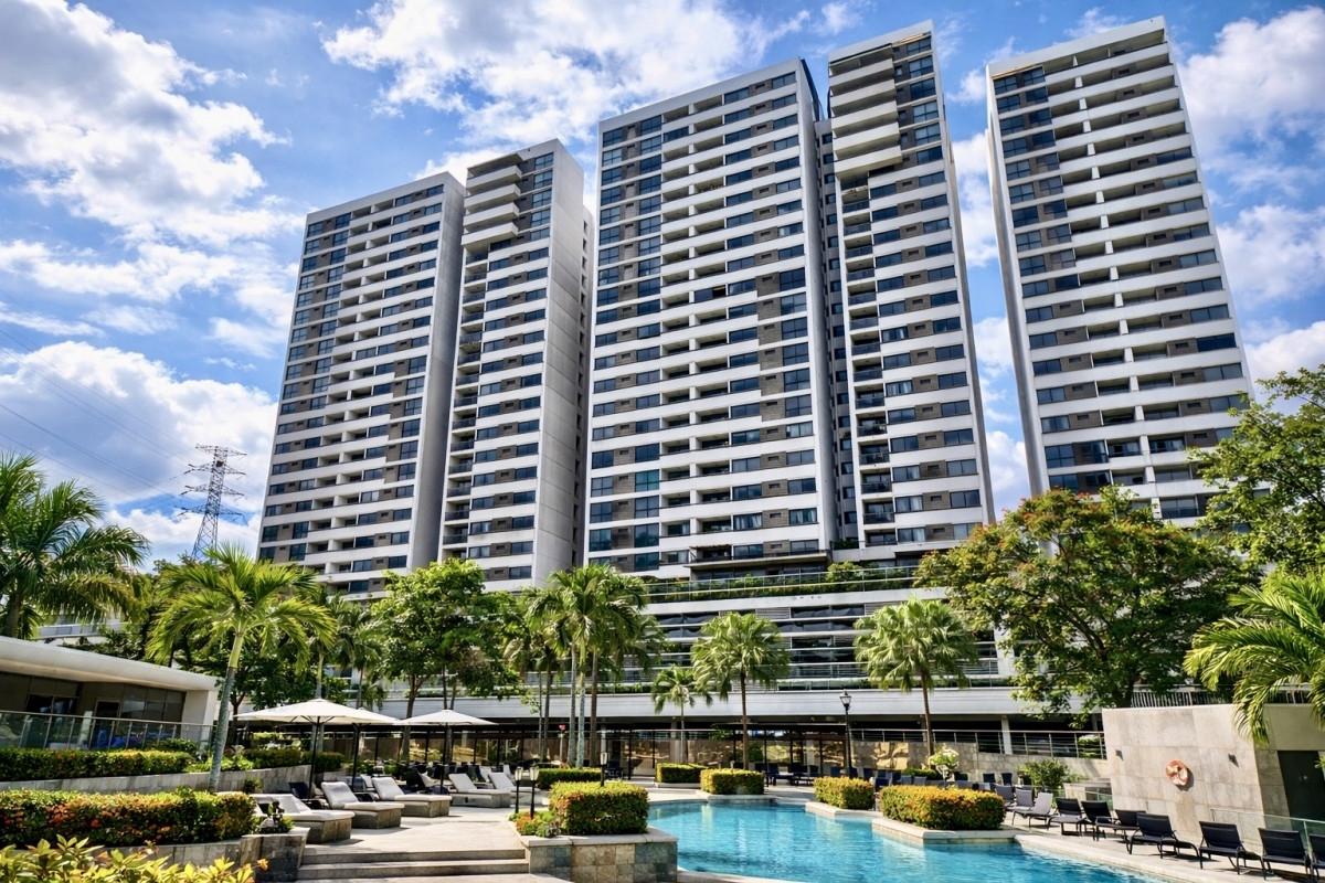 Vive con comodidad y estilo en este moderno apartamento de 96.87 m², ubicado en una de las torres de Condado Country Club. Su distribución funcional ofrece 2 recámaras, 2 baños completos y 2 estacionamientos, ideal para parejas, familias pequeñas o profesionales que buscan calidad de vida en un entorno seguro y bien planificado. El complejo cuenta con excelentes áreas sociales, incluyendo piscina, zonas de barbacoa, playground para niños, área para mascotas, canchas deportivas y amplias áreas verdes, diseñadas para disfrutar en familia y en comunidad. Su ubicación estratégica, a pocos pasos del Centro Comercial Alta Plaza, permite acceso inmediato a supermercados, restaurantes, farmacias, cines y todos los servicios esenciales. Una excelente opción para vivir bien o invertir en una zona de alta demanda.