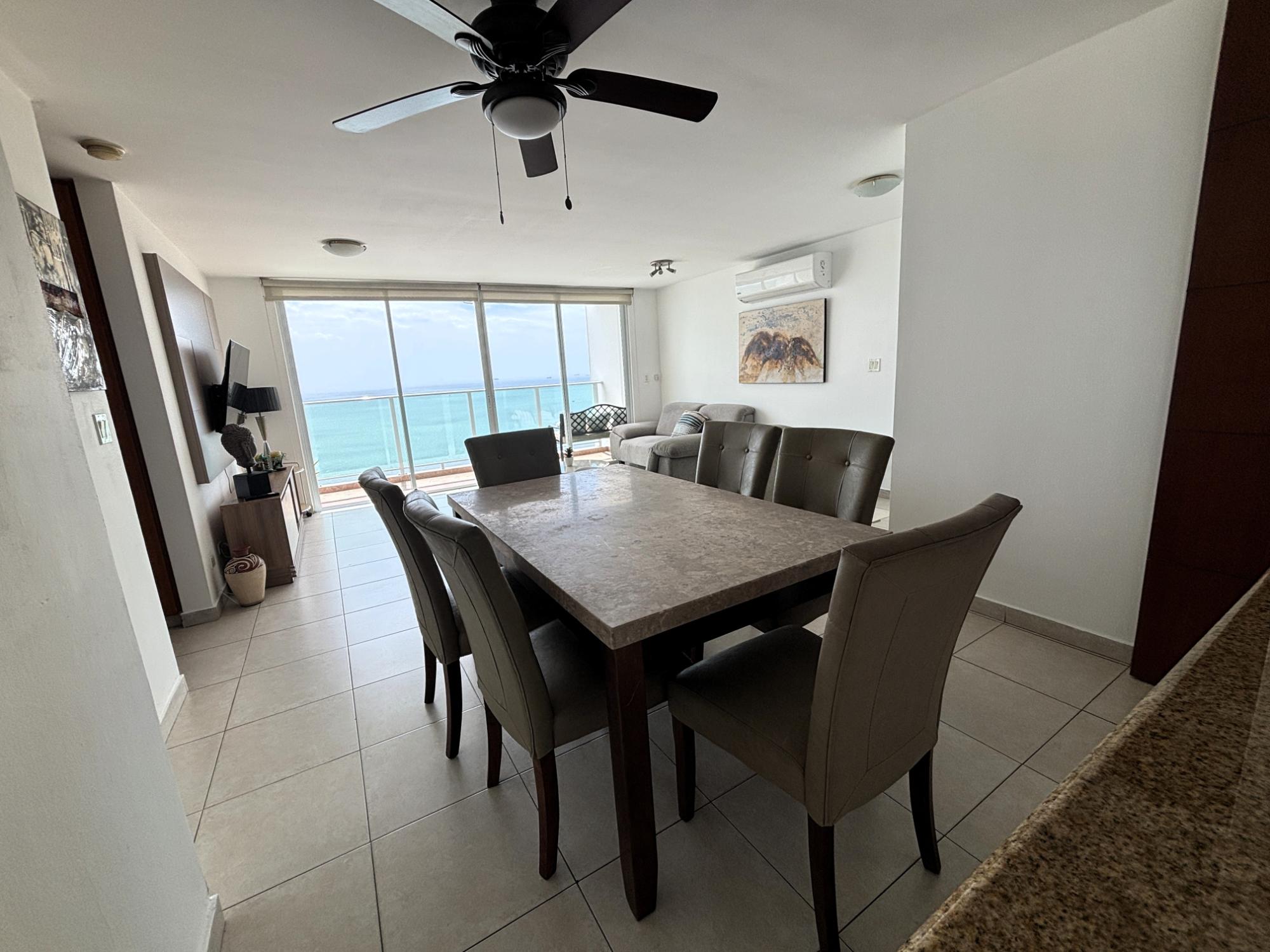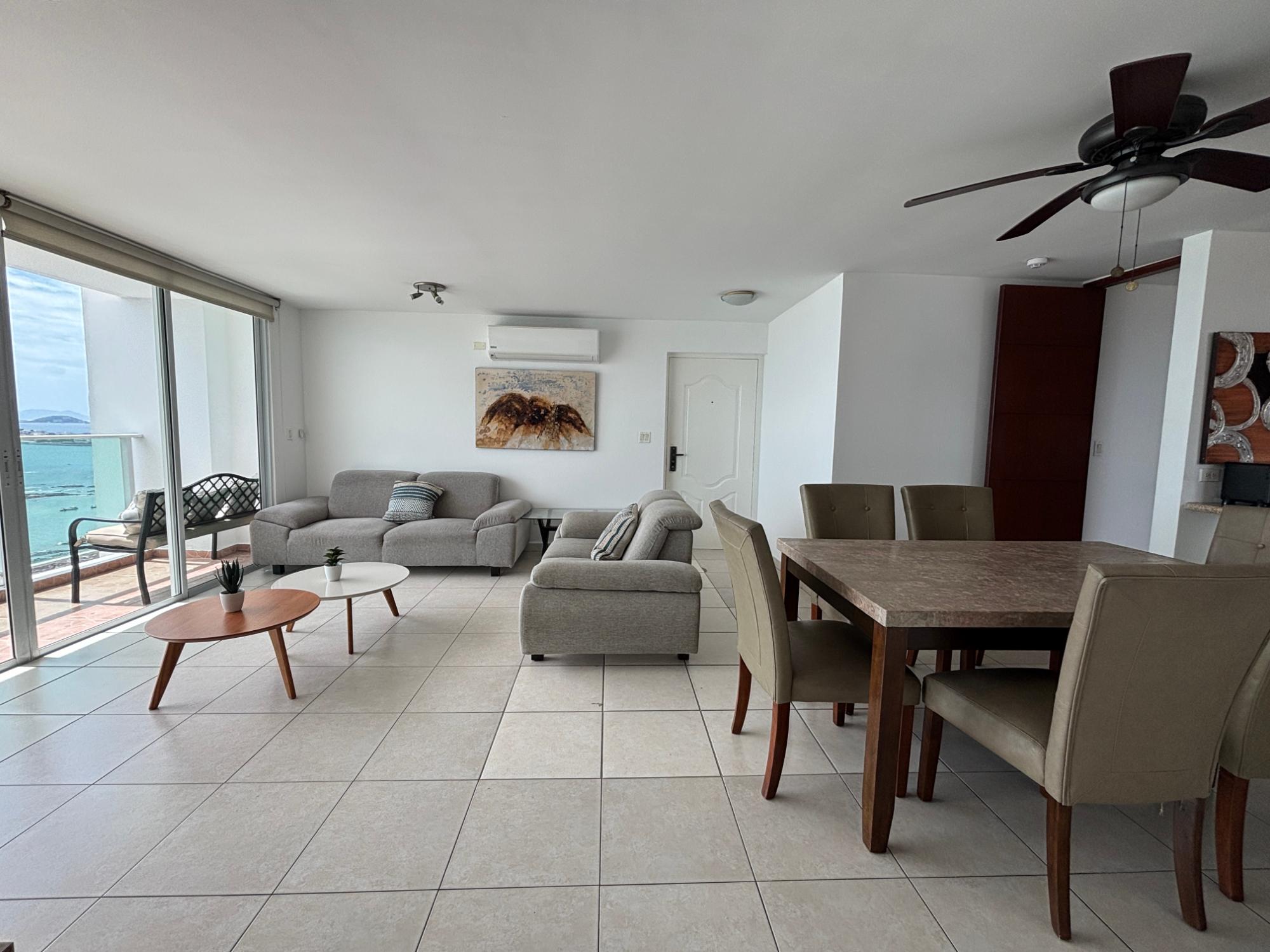 Cómodo apartamento totalmente amoblado y listo para ocupar en el edificio Terramar, torre 1000. Cuenta con tres recámaras, dos baños e increíble vistas al mar y a la ciudad. Terramar es un complejo de edificios de primera fila frente al mar. Su área social es amplia y cuenta con sala de fiesta, piscina y gimnasio. Adicionalmente tiene planta eléctrica, seguridad 24 horas, garita de acceso, estacionamientos de visita y tres elevadores. No dude en contactarnos para conocerlo.