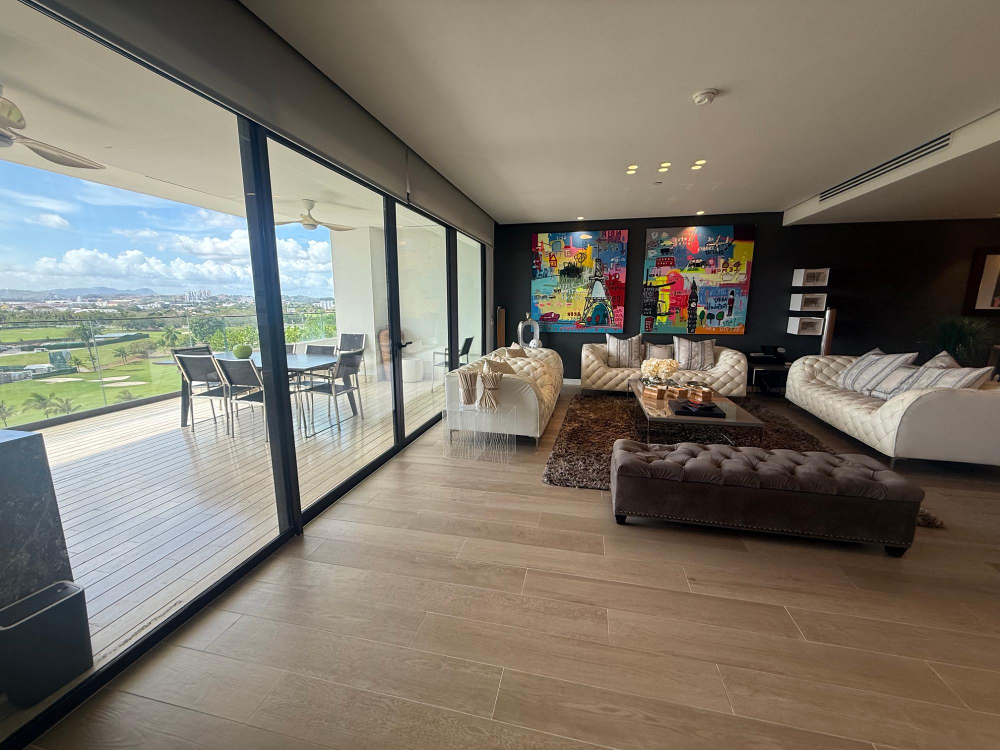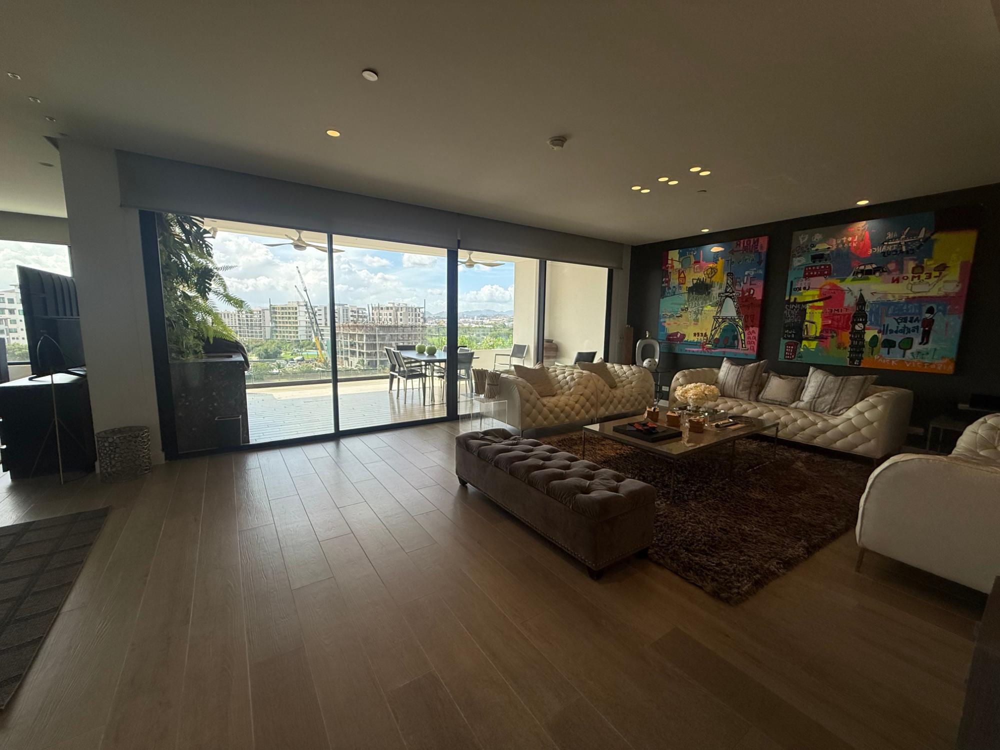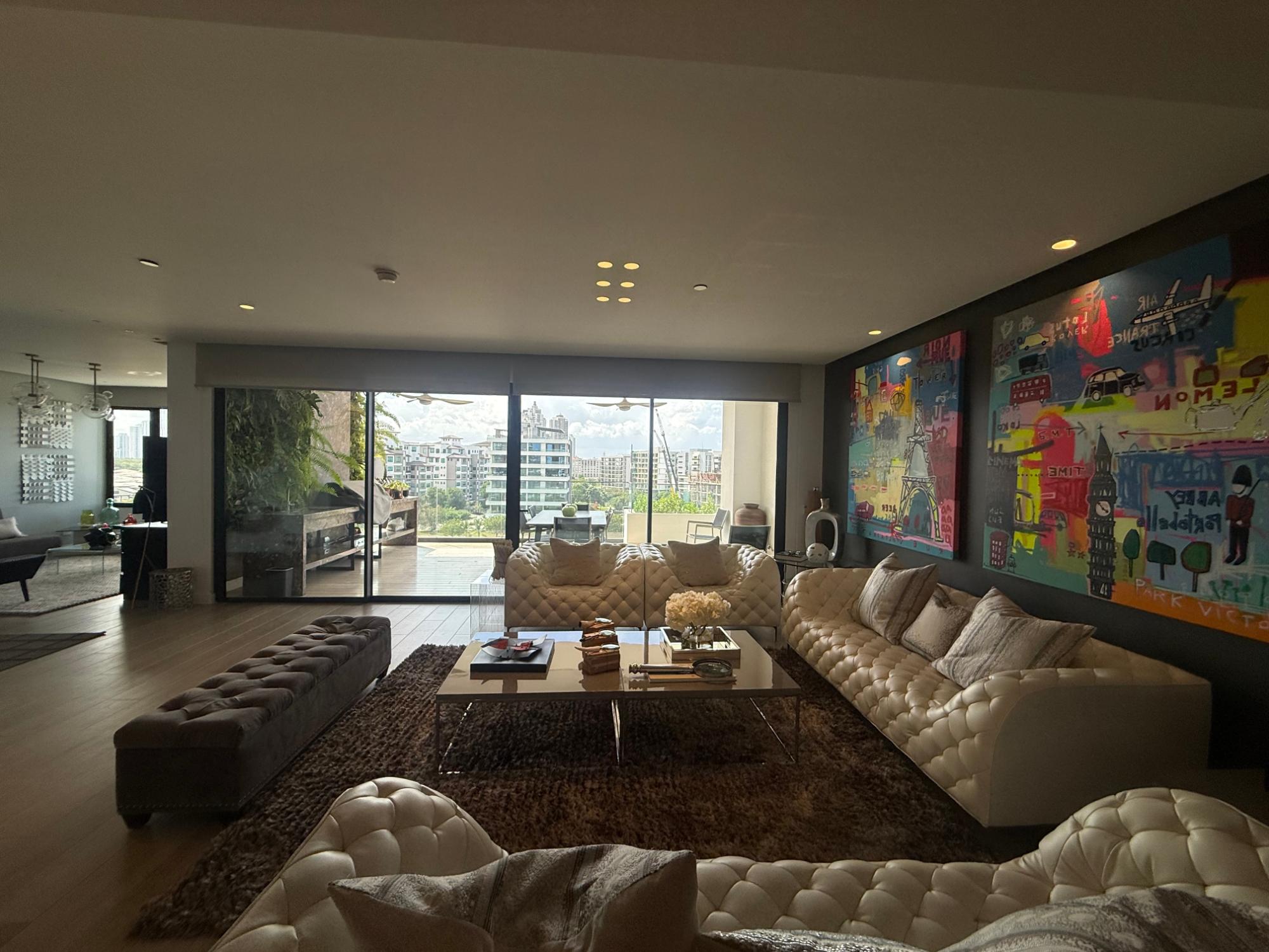 Exclusivo apartamento en PH Lantana, Crescent Lane Santa María, de 409.72m2, 4 recámaras, 4.5 baños, balcón con vista al campo de golf, sala comedor, den, bar, baño de visita, cocina con isla y desayunador, lavandería con puerta de servicio, cuarto y baño de servicio, depósito en el apto, cuatro (4) estacionamientos, un (1) depósito.