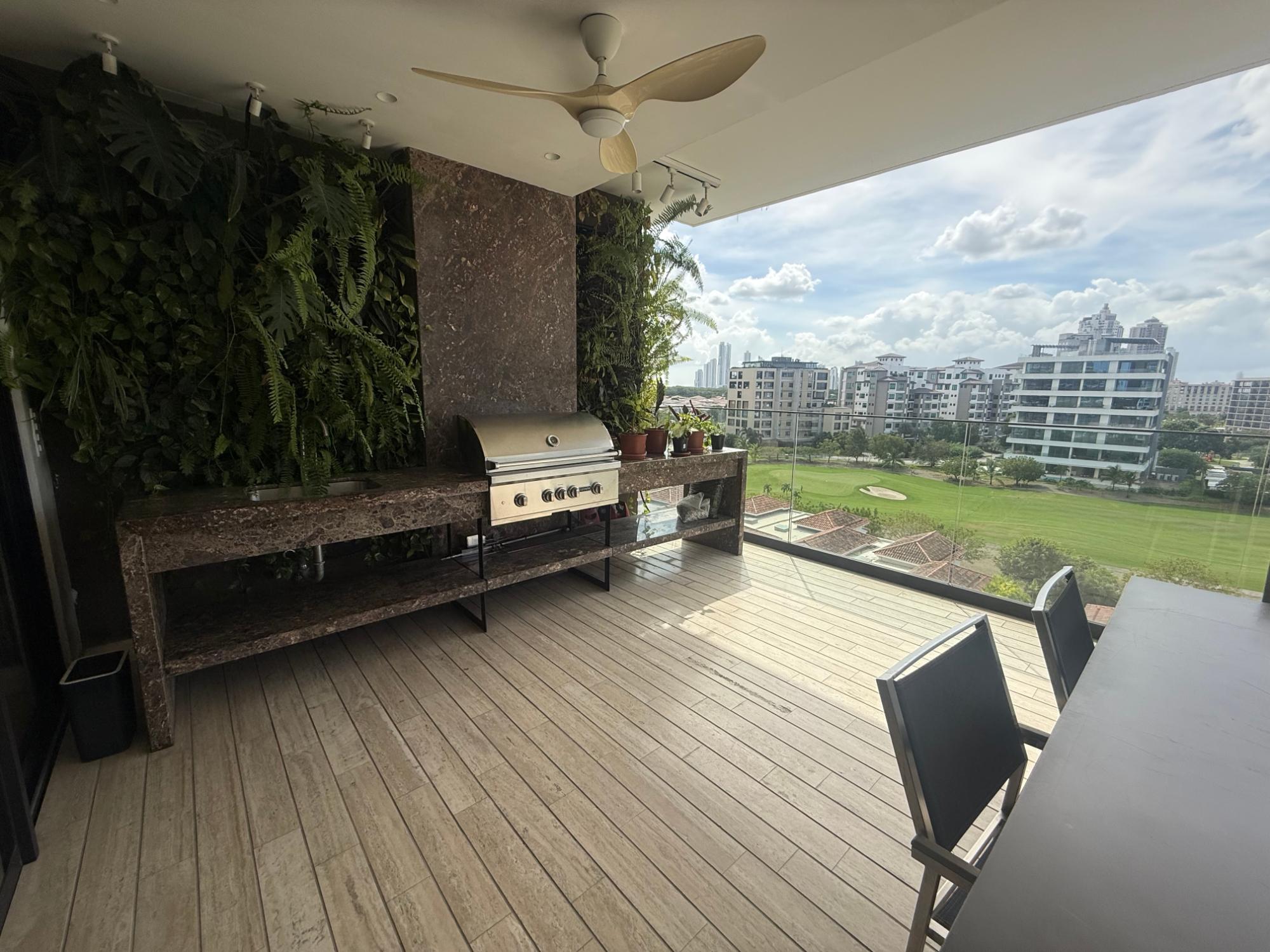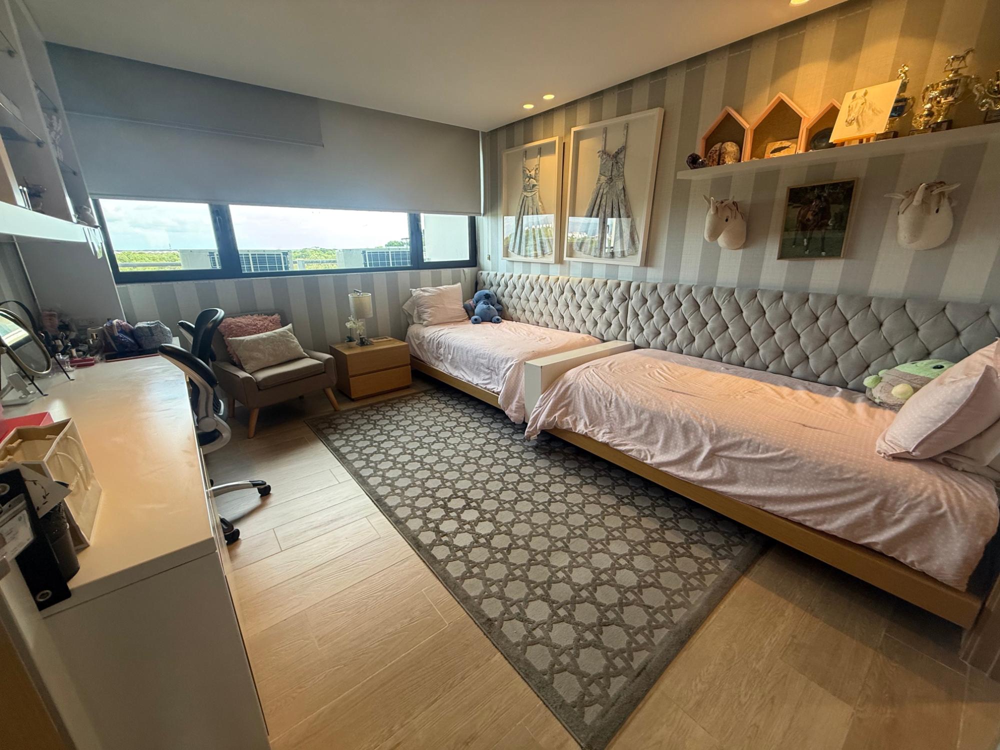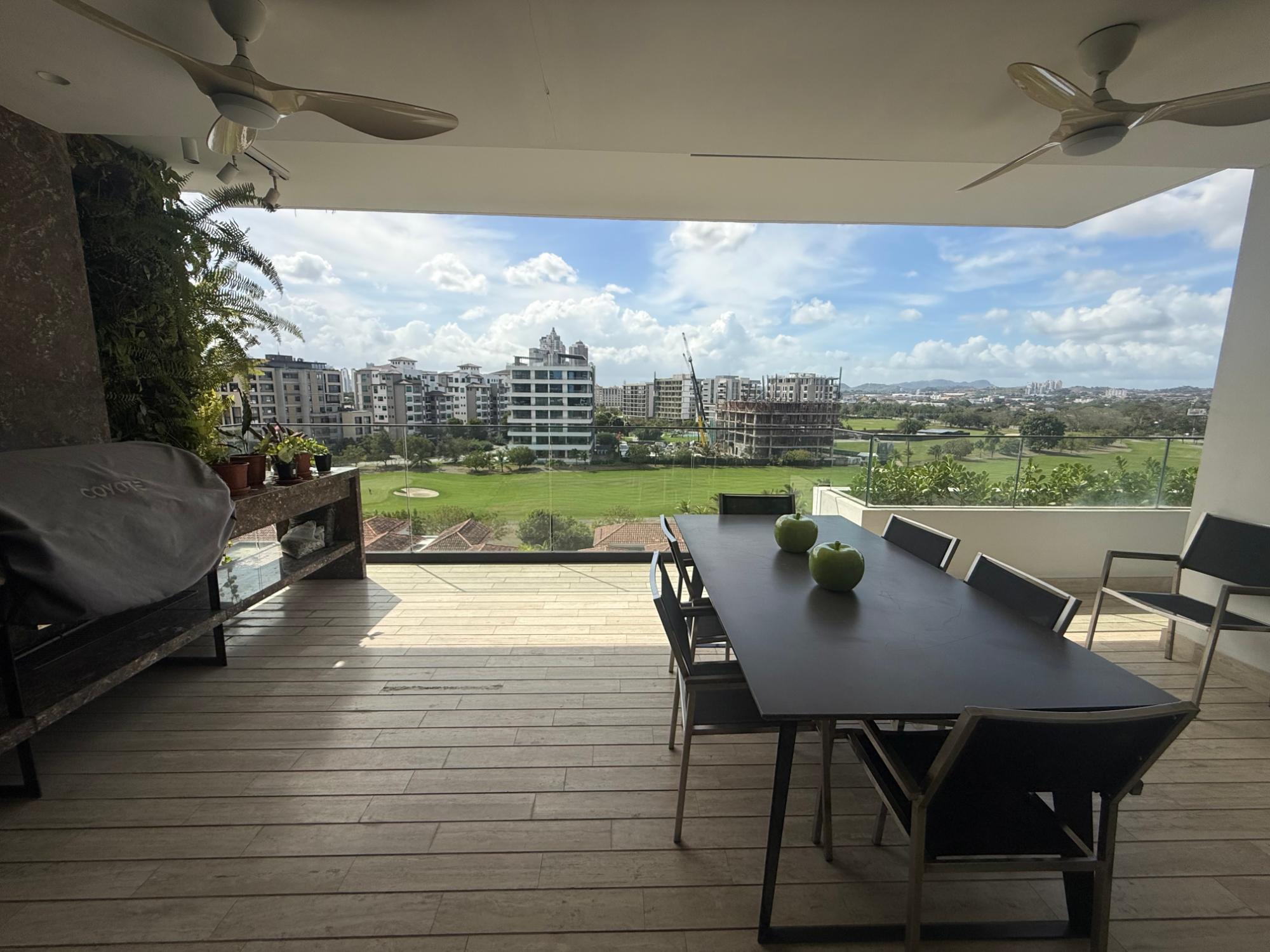 Exclusivo apartamento en PH Lantana, Crescent Lane Santa María, de 409.72m2, 4 recámaras, 4.5 baños, balcón con vista al campo de golf, sala comedor, den, bar, baño de visita, cocina con isla y desayunador, lavandería con puerta de servicio, cuarto y baño de servicio, depósito en el apto, cuatro (4) estacionamientos, un (1) depósito.