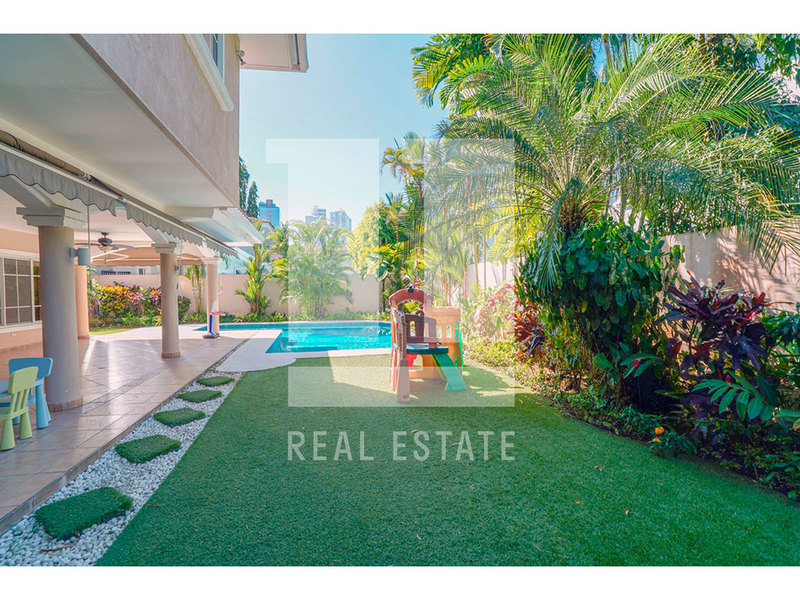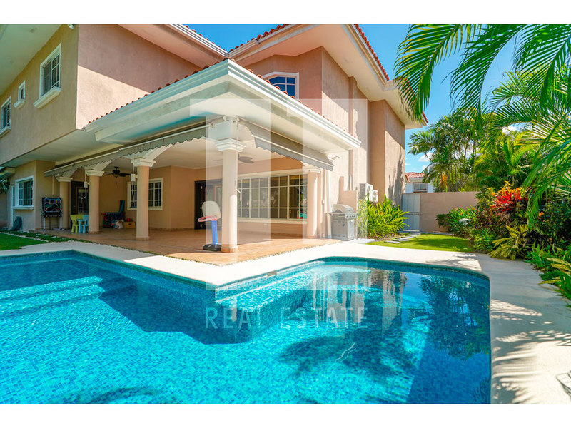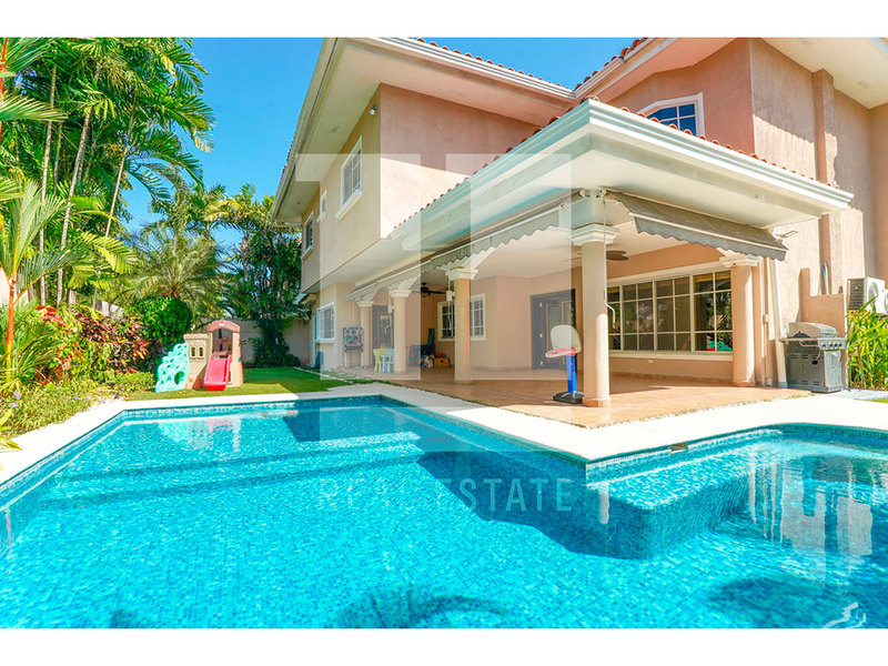 Costa de las Perlas es uno de los residenciales mas cotizados y tranquilos de Costa del Este, es un area moderna y planificada reconocida por su infraestructura de alto nivel, espacios abiertos y ordenados, zonas verdes que brindan una sensacion de amplitud. La propiedad cuenta con dos niveles, el primer nivel se distribuye en area exterior con portal con estacionamiento techado, area de lavandería, depósito, piscina y terraza posterior, en el interior de la propiedad vestíbulo, medio baño de visita, estudio o den, sala, comedor, cocina, desayunador, cuarto y baño de empleada. La planta alta se distribuye en sala familiar, tres recámaras secundarias con baño completo cada una y dos con cuarto vestidores y la recámara principal con cuarto vestidor y baño completo con jacuzzi. Ademas el residencial cuenta con seguridad las 24 horas, control de acceso para visitantes, area social con parques y canchas deportivas.