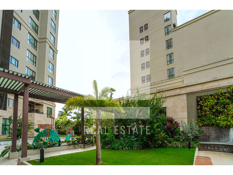 Santa Maria Court está ubicado a un costado de The Santa María Hotel, dándole exclusivas y únicas amenidades a sus propietarios como piscina, gimnasio completo, sala de vapor o baño turco, salon de eventos y areas sociales, parque infantil y sala de cine. Vivir en Santa Maria es sinonimo de exclusividad y buen vivir, con acceso directo al club de golf, spas, restaurantes, calles amplias con poco trafico interno, ambiente tranquilo con control de acceso las 24 horas. Este moderno apartamento cuenta con 267.13 m2 completamente diseñado con acabados de lujo distribuidos en sala, cocina, comedor, (1/2) medio baño de visitas, dos (2) recamaras (2) baños, balcon, amplia terraza, area de lavanderia, cuarto y baño de empleada.