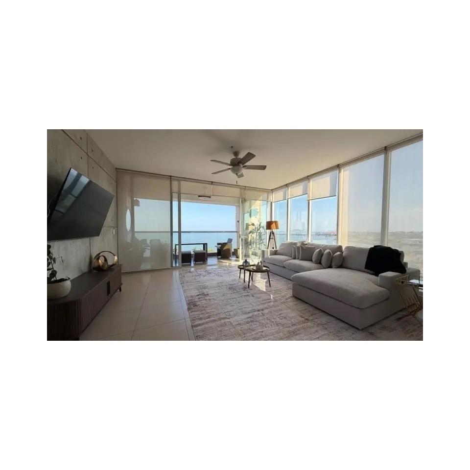 Vive frente al mar en uno de los edificios más exclusivos de la Avenida Balboa: Rivage Tower. Este hermoso apartamento modelo A de 178 m² ofrece una ubicación privilegiada, completamente amoblado y equipado, listo para mudarse. Distribución del apartamento: 2 cómodas recámaras 2 baños completos Centro de lavado 1 estacionamiento Amenidades del edificio: 3 áreas sociales de lujo Piscina semiolímpica Piscina techada con motor para entrenamiento (endless pool) Piscina y jacuzzi panorámico en el rooftop Gimnasio completamente equipado Sala de masajes, baño turco y cuarto de vapor Área de juegos para niños Cancha de tenis Salón de juegos Elegante lobby y seguridad 24/7 Estacionamientos para visitas