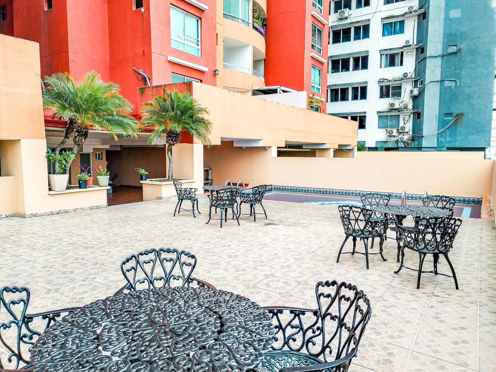 Ubicado en la Torre 1 de Royal Hill, Villa de las Fuentes, Ciudad de Panamá, este condominio de 87 m² está disponible para venta o alquiler. El apartamento cuenta con una sala de estar y comedor de concepto abierto que se conecta a un amplio balcón con vistas a la ciudad, ideal para relajarse o recibir invitados. La cocina tiene su propio espacio definido, con un área de lavandería separada justo al lado. La propiedad incluye dos recámaras y tres baños, brindando un espacio funcional para los residentes. La unidad se vende incluyendo lavadora-secadora, estufa, aires acondicionados y refrigerador. La cuota mensual de mantenimiento es de $130 y cubre el gas y el mantenimiento de las áreas comunes, seguridad 24 horas. La propiedad incluye un espacio de estacionamiento asignado y 15 estacionamientos para visitas. El edificio está ubicado a aproximadamente un minuto del centro comercial El Dorado, lo que permite un cómodo acceso a tiendas y servicios, a la vez que se encuentra en una calle tranquila sin salida. Las comodidades del complejo incluyen una piscina, estacionamiento para visitantes, áreas sociales, salón de fiestas, área de juegos para niños, dos tanques de reserva de agua y dos ascensores de alta velocidad. El vestíbulo cuenta con seguridad las 24 horas y servicio de conserjería.