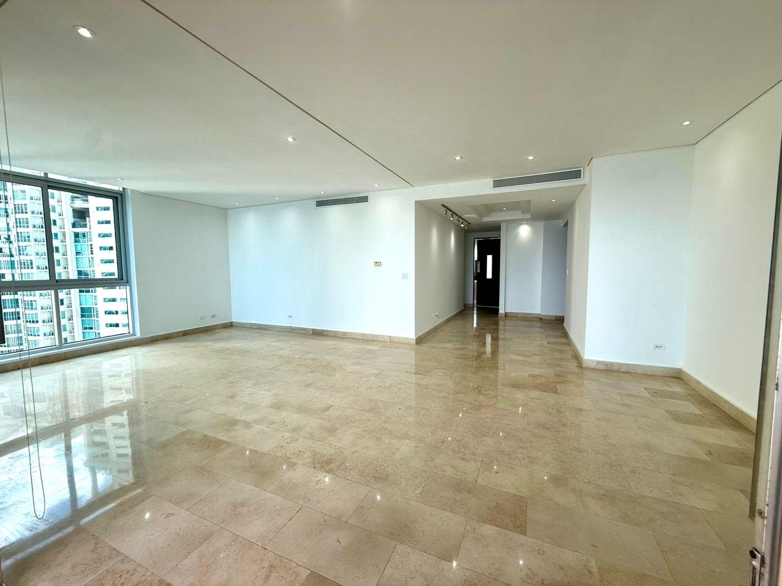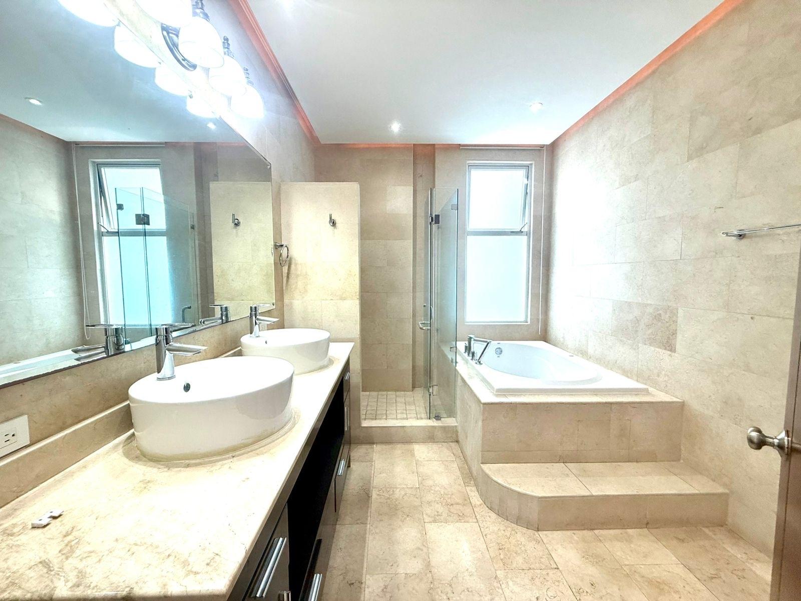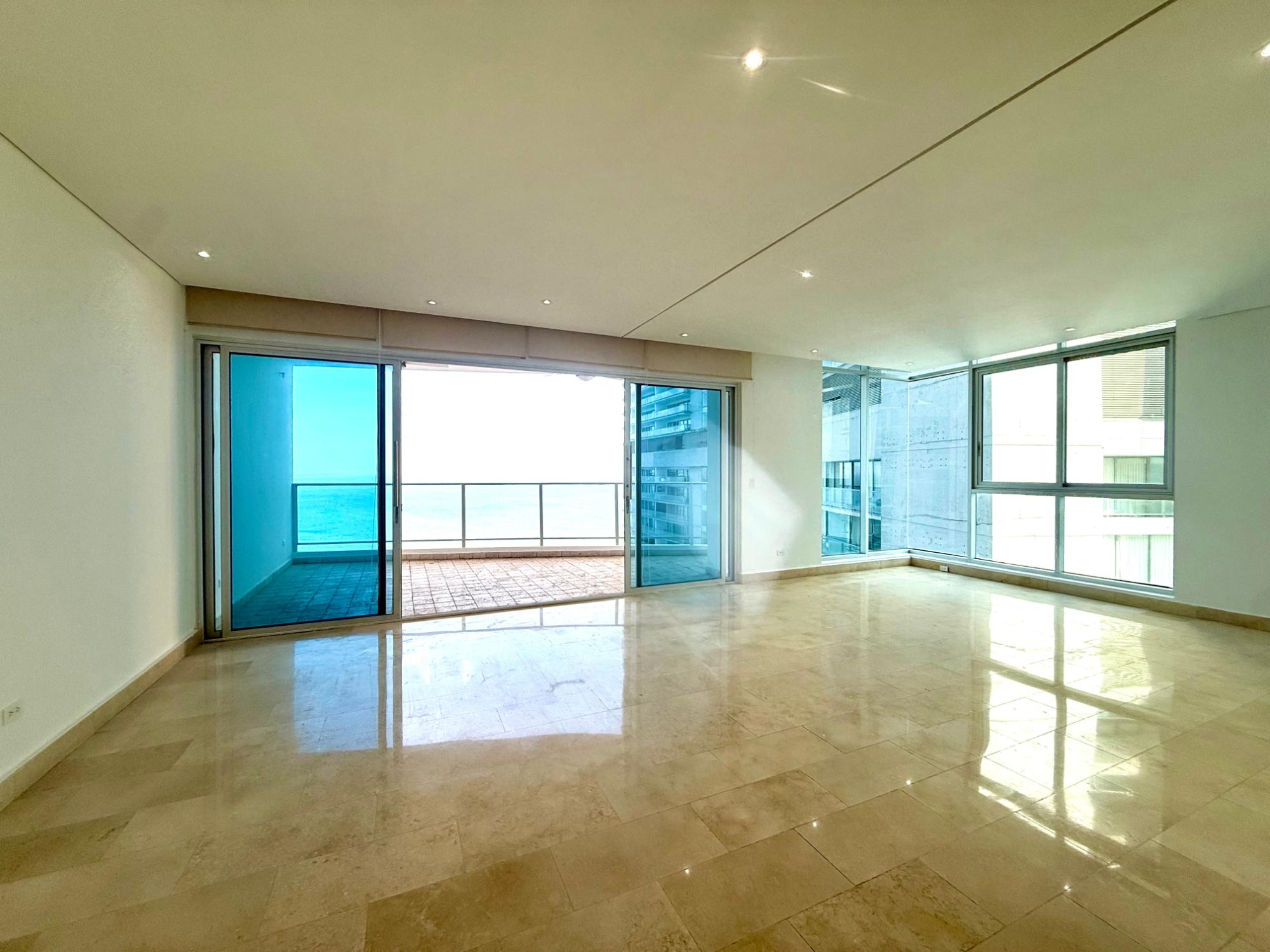 Espectacular apartamento de 260 m² con una excelente distribución y preciosas vistas al mar. La propiedad destaca por sus amplios espacios y luminosidad, comenzando por un generoso balcón ideal para disfrutar del entorno. Cuenta con una elegante sala-comedor de gran tamaño y una cocina cerrada en muy buen estado, equipada con aire acondicionado, lavavajillas y estufa nuevos, además de ventana que favorece una óptima ventilación cruzada. Dispone también de una amplia área de lavandería. El área privada está inteligentemente separada mediante una puerta, ofreciendo mayor privacidad. En esta zona se encuentra un acogedor den que conecta con tres habitaciones espaciosas, todas con su propio clóset y baño en suite. La recámara principal es especialmente amplia, con vistas al mar y un baño en suite de gran tamaño que incluye ventana, doble lavamanos, ducha y bañera. El apartamento se encuentra en impecable estado, listo para ocupar. Además, cuenta con dos estacionamientos, uno junto al otro, y un depósito. Una oportunidad única para quienes buscan amplitud, confort y una ubicación privilegiada. Contáctanos para más información o para coordinar una visita.”