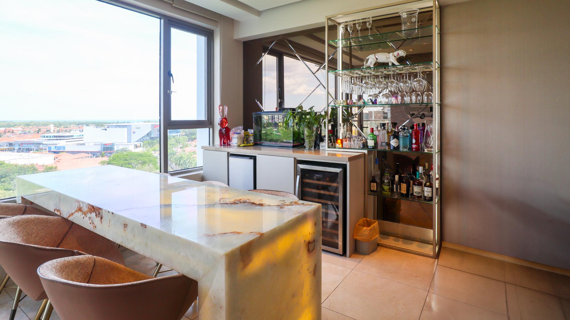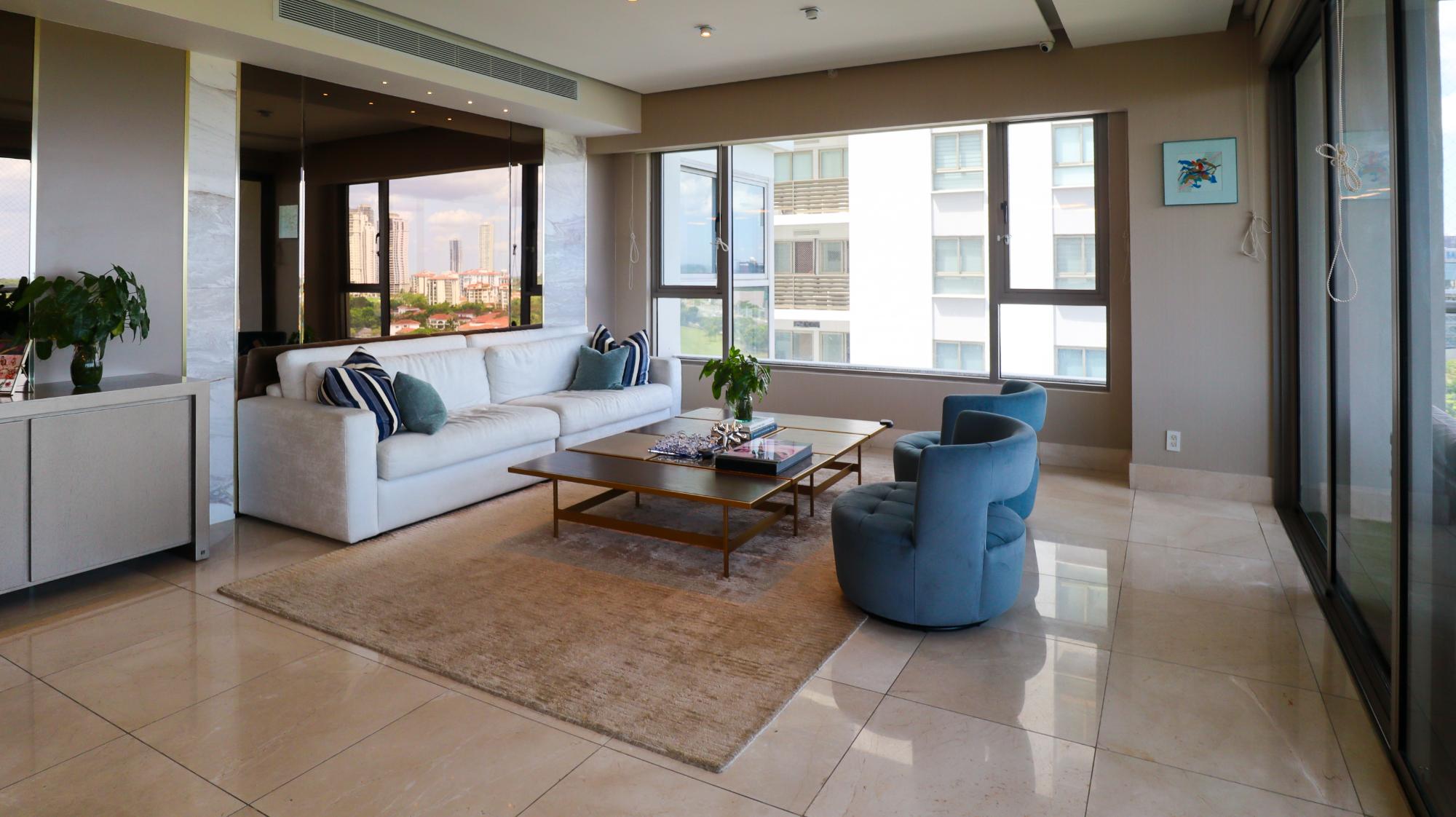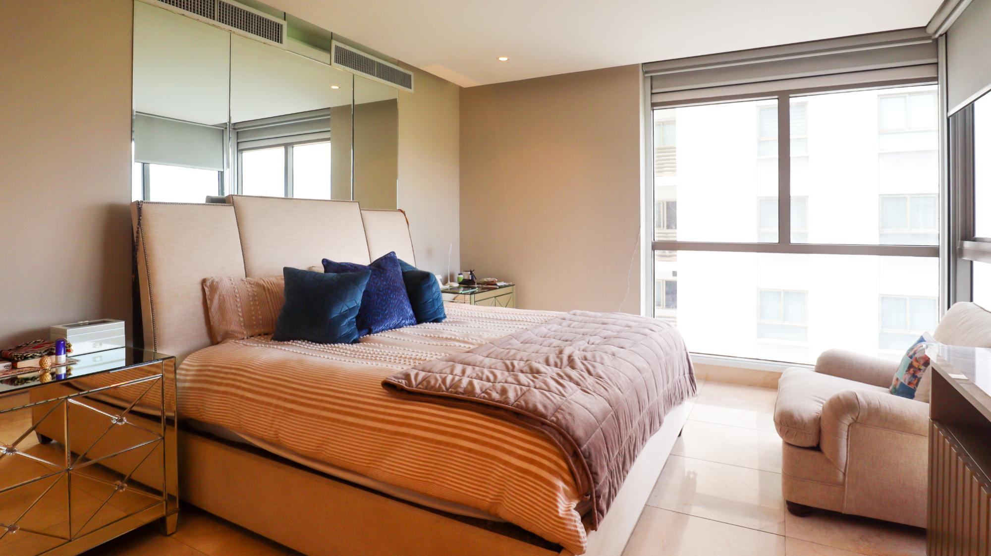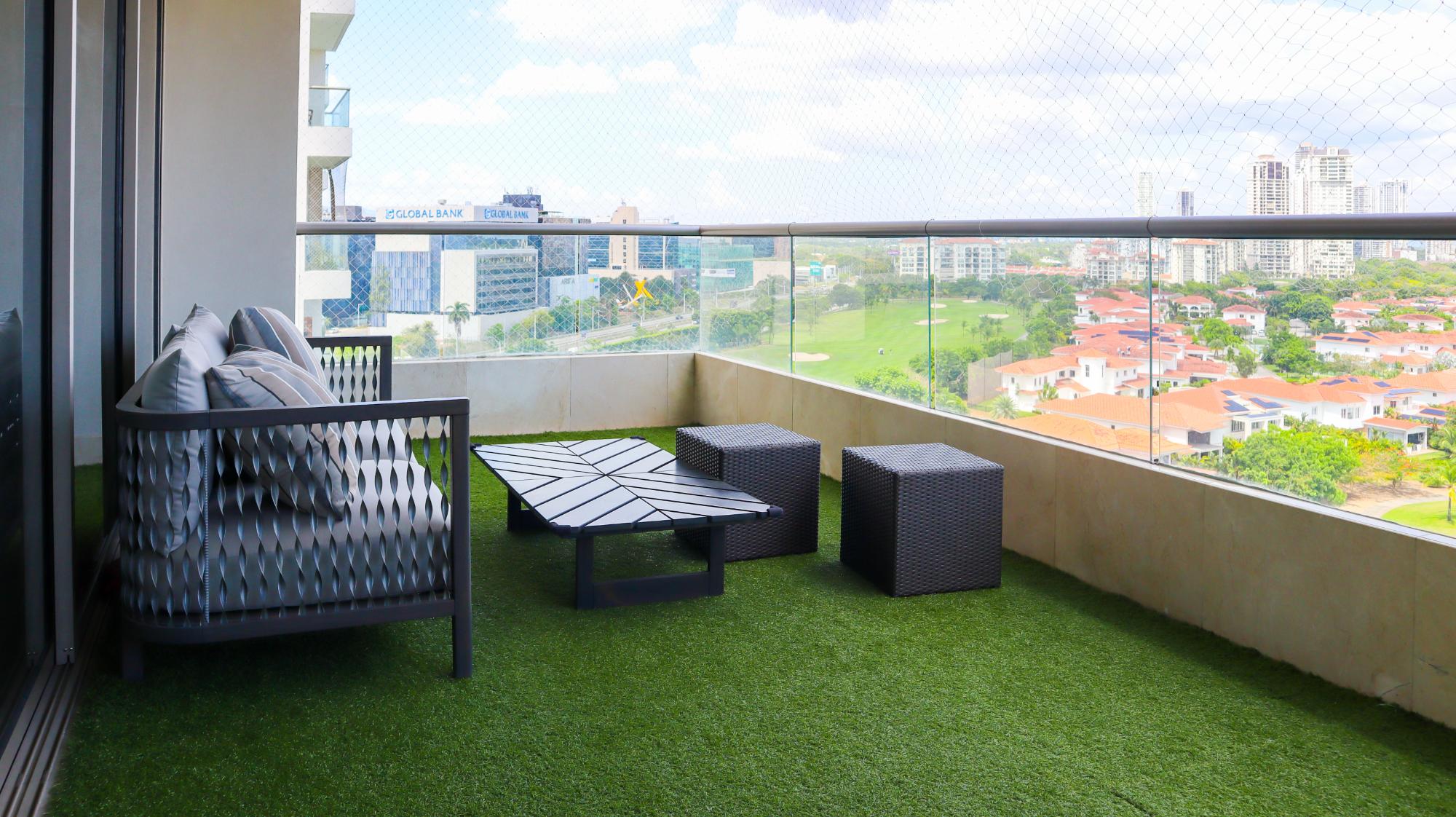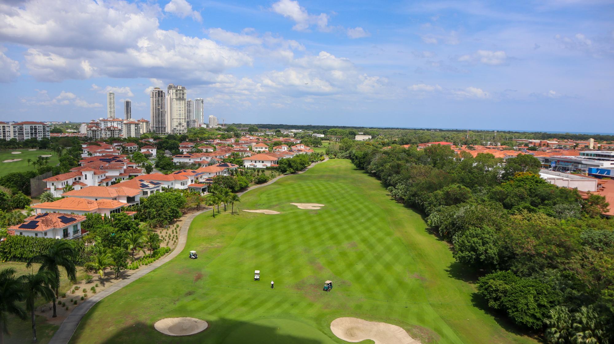 Exclusivo apartamento de 314 m² en el edificio Greengarden, ubicado en Santa María Golf & Country Club, que cuenta con 3 recámaras, cada una con su baño privado y walk-in closet en la principal, 3.5 baños incluyendo medio baño de visitas. Ofrece impresionantes vistas panorámicas al campo de golf, la playa y la ciudad. Su distribución incluye sala-comedor, cocina cerrada italiana con desayunador, den, sala familiar, terraza, área de lavandería, cuarto y baño de servicio. Entre sus acabados destacan pisos de mármol, puertas de madera importadas y ventanas de doble vidrio. El edificio dispone de amenidades como piscina, gimnasio, salón de fiestas, áreas de juegos para niños, cancha de fútbol, amplias áreas verdes, seguridad 24/7, planta eléctrica y tanque de agua de reserva. Adicionalmente, cuenta con 3 puestos de estacionamiento, depósito y extras como aires acondicionados, línea blanca, rollers y blackouts en todas las recámaras. Este apartamento combina lujo, comodidad y una ubicación privilegiada en una de las comunidades más exclusivas de Panamá.