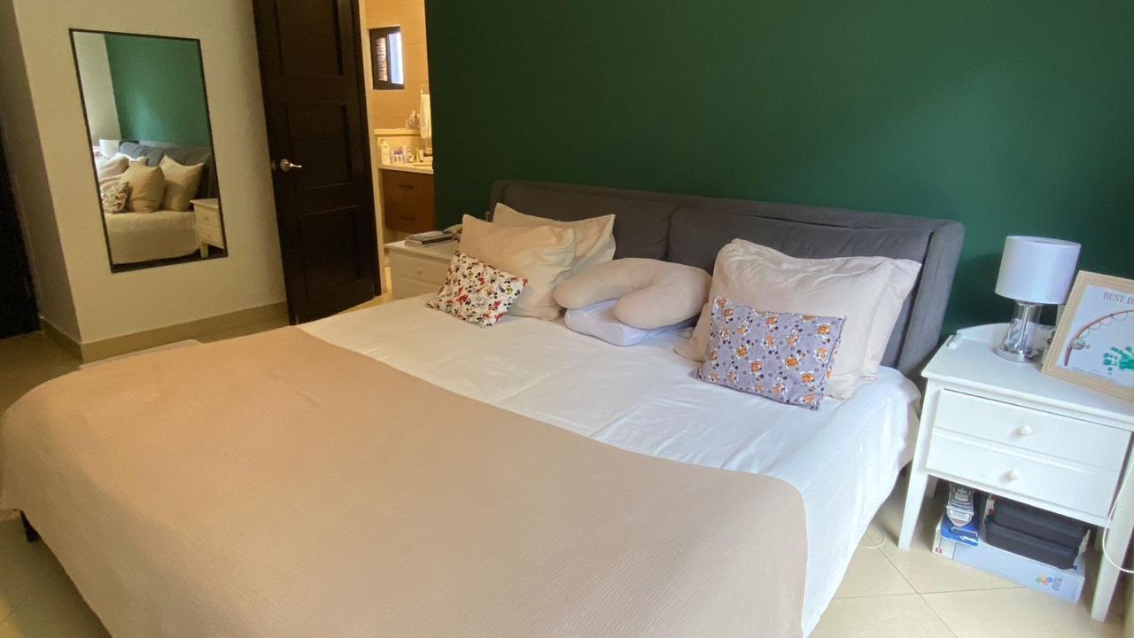 Cuenta con 2 recamaras, 2 baños, medio baño de visita, cuarto y baño de servicio, 2 estacionamientos,